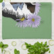 A portrait of a Ram / Bighorn Sheep with mountains and flowers.