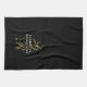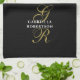 Personalized elegant refined chic kitchen towel, customizable with monogram, initial letters and name. Classy timeless premium look black background, elegant gold calligraphy script handwritten initial letters, and stylish white typography for the name. Beautiful and useful, for you or as a thoughtful custom gift for her, under 20 dollars. Elevate your kitchen and dining decor with this unique linen. Suitable as housewarming, new homeowner or perfect host kitchen essentials gift. Even to stage a house for sale and make it more attractive for potential buyers.