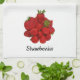 Toalla de cocina de papel blanco con fresas rojas frescas. La imagen fotográfica de fresas reales es casi vertiginosa. Estas toallas de cocina rojas y blancas se pueden personalizar con un nombre de familia o su propio texto y son ideales para cualquier cocina de campo. Esta imagen es la fotografía original de frutas botánicas y bayas de JLW_PHOTOGRAPHY.