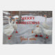 Foto de Zolotareva. Blanco ganso en la nieve blanca. Los geeses son graciosos. Puede agregar nombre o texto personalizado. Personaliza esta plantilla.