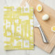 Toalla de cocina de estilo retro amarillo con un bonito patrón de estilo retro con utensilios de horneado y flores retro simples todo en amarillo y blanco. Puede hacer el patrón más grande o más pequeño en la toalla de cocina.