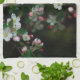 This kitchen towel features my original photograph of a blooming apple tree In spring, with deep, cool colors.