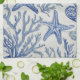 Kitchen Towel - Elegant blue and white coastal toile pattern with detailed coral, seashells, and starfish illustrations. Ideal for beach lovers, coastal decor fans, and those who enjoy classic ocean-inspired designs.