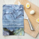 Anuncie su ceremonia de casamiento y recepción de fiestas de verano o jardín de manera única con la bonito Blue Hydrangea Floral Wedding Save the Date Kitchen Toel. Este elegante matrimonio botánico personalizado conserva la toalla de fecha con una fotografía floral de flores de horangea azul pintada digitalmente.
