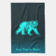 Una representación simple, brillante, como de neón de un oso Kodiak. Inspirado por las auroras boreales. Personalizar agregando su propio texto. El oso Kodiak (ursus arctos middendorffi), una subespecie del oso marrón o pardo, son los osos más grandes del mundo. Un macho adulto puede tener más de 10 pies de altura cuando está erguido sobre sus patas traseras y pesa más de 1500 libras -verdaderamente un espectáculo para contemplar. Se estima que un oso en el zoológico de Bismarck del Norte pesó hasta 2400 libras. Los osos viven en las islas del archipiélago Kodiak de Alaska. Hoy en día hay aproximadamente 3500 osos de Kodiak y su número está aumentando debido a las excelentes condiciones de su hábitat, incluido el puño suficiente para comer. Se les llama "takuka-aq" en Alutiq, la lengua de la gente nativa de esa zona. Se cree que los osos han estado aislados allí desde finales de la última Edad de Hielo hace más de 12,000 años. Aunque son el carnívoro terrestre más grande, su dieta incluye grandes cantidades de hierba, otras plantas y bayas. Hoy en día hay aproximadamente 3500 osos de Kodiak y su número está aumentando debido a las excelentes condiciones de su hábitat, incluyendo peces suficientes para comer. Debido a la abundancia de recursos alimenticios, los osos de Kodiak tienen rangos domésticos más pequeños que cualquier otro oso pardo y no tienen necesidad de defender territorios. El pueblo de Alutiq cazaba osos por comida, ropa y herramientas. Las flechas, las lanzas y una gran cantidad de coraje eran necesarios para el equipo de caza. Por lo general, las cabezas de oso se dejaban en el campo como señal de respeto al espíritu de los osos.
