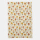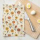 This kitchen towel features blooms dancing across a soft, cream background, showcasing a whimsical array of flowers in warm shades of red, orange, and yellow. Each flower is playfully illustrated with distinct shapes, featuring vibrant petals and bold centers, complemented by scattered dots and delicate leaves. The cheerful composition evokes a joyful and inviting atmosphere, perfect for springtime energy.
