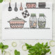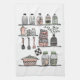 Una toalla de cocina de inspiración boho con un ilustracion estante de cocina a mano perfecto para una moderna casa de campo. Diseñado en una paleta de colores pastel rosa, gris y verde, este accesorio de decoración única en casa será una pieza de acento impresionante para la cocina, el salón y el comedor y hará un hermoso regalo para quien le gusta cocinar.