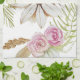 Una hermosa toalla de cocina botánica floral rosa verde blanca y marrón. Es un regalo ideal o cómprala para tu propia cocina.