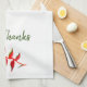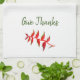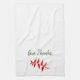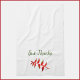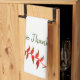 Elegante toalla de cocina blanca con DIVERSAS GRACIAS en letras de escritura verde con una flor de color coral. Hermosa adición a la decoración de tu casa...con un mensaje.