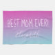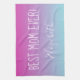 Un regalo de bonito para mamá, esta toalla de cocina es genial para el Día de la Madre, el cumpleaños de mamá o las vacaciones. Este diseño tiene un fondo azul morado. "La mejor mamá de todos los tiempos" se muestra en una fuente rosa claro. Una plantilla para insertar un nombre en una bonita fuente cursiva está justo debajo. ¡Pide tu toalla de cocina hoy!
