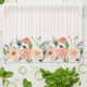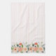 Un diseño moderno con flores de melocotón y terracota sobre un fondo a rayas.
