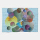 un collage de círculos y anillos en un diseño tridimensional con una textura de lino suave creó esta ilusión de burbujas flotantes. toalla divertida para coincidir con cualquier esquema de color. arte digital informático por imágenes kaps