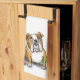 Diseño caprichoso de un Bulldog inglés. ilustracion de acuarela digital de Lauren Ball.