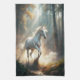 Un caballo blanco corriendo por un bosque