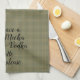 Divertido, toalla de estilo rústico dice que tendré un Café-Mocha-Valium-Vodka Latte para ir por favor. La toalla es de color marrón claro, con un borde rojo y medio a cuadros.
