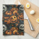 Toalla de cocina de patrón de calabaza de Halloween de color naranja oscuro.