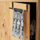 Cubierta de cráneo encerrar la toalla de mano de la cocina de diseño creativo de textura gótica grunge en blanco y negro. Decoración única, fresca, moderna, de estilo vintage. Derechos de imagen de Marg Seregelyi Photography.