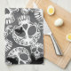 Calavera de azúcar decorativa, elemento con el logotipo de Dia De Los Muertos con cuerdas, ravens, murciélago ensamblados para componer un espeluznante diseño vectorial de Halloween. Original Art Copyright BluedarkArt TheChameleonArt.