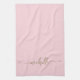 Elegante Chic Moderno Toalla de Cocina Rosa Rosado con Monograma de Nombre Personalizado en Dorado. Con nombre personalizado en una fuente de letra manuscrita con cola florida (o tipografía) en dorado sobre fondo de color rosa rosado o rosa bebé. Estas son fáciles de personalizar. Gran regalo elegante y femenino para inauguración de casa, también para cumpleaños, boda, día de la madre, despedida de soltera y es para la chica que ama cosas femeninas minimalistas únicas.