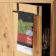 Camión rojo retro con texto de Felices Fiestas y árbol de Navidad verde. Se puede cambiar el color de fondo negro. El texto es editable.