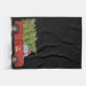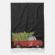 Camión rojo retro con el apellido de la familia y árbol de Navidad verde. Se puede cambiar el color de fondo negro.