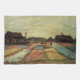 Campos de Bulbos por Vincent van Gogh es una pintura vintage de arte floral postimpresionista de paisaje natural. Un campo de granja de flores primaverales florecidas con un agricultor caminando, el cielo está lleno de nubes grises de tormenta. Una granja está en la distancia.