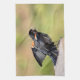Un pájaro negro alado rojo canta en una barandilla. Esta imagen fue tomada en New Paltz, Nueva York por Debbie Quick de Debs Creative Images. Para ver más fotos de Debbie, echa un vistazo a su sitio web en:www.debscreativeimages.com