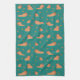 Las toallas de cocina incluyen ilustraciones de capibaras flotando en el agua. Estos lujosos capibara se entremezclan con un pequeño naranja. El fondo verde azulado se completa con los tonos marrones, creando una estética caprichosa y alegre.