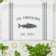 Personalizar tu cocina con esta linda toalla personalizada que incluye tu nombre familiar o el nombre de tu casa y el año establecido en la rica letras grises de carbón vegetal acentuadas con un ilustracion de pescado.