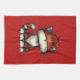 Kitchen towel with a whimsical drawing featuring a big orange red kitty cat.