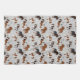 Cute Cavalier King Charles Spaniel con abrigos negros, marrones y blancos con huesos de perro dispersos y patrón de huellas de aletas.