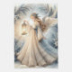 A luminous winter angel drifts through a quiet snowy landscape, carrying a softly glowing lantern that casts a warm golden halo against cool blue tones. Her flowing gown and feathered wings create an ethereal sense of grace, framed by evergreen branches, pale poinsettias, and delicate botanical details that enhance the peaceful Christmas atmosphere. The gentle contrast of warm light against frosted surroundings evokes hope, serenity, and sacred stillness, making this design ideal for holiday décor, spiritual themes, and winter storytelling. Elegant linework, soft watercolor shading, and a dreamlike palette blend together to create a timeless seasonal scene full of wonder and tender emotion. AI generated artwork.