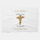 Mientras los estudiantes se ganan el abrigo blanco, esta almohada o toalla personalizado es perfecta para dar. Tiene un símbolo médico de fondo blanco. Puedes personalizar con el nombre y la escuela de la persona. Esta es una manera especial de felicitarlos por su logro.
