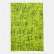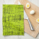 Esta toalla de cocina tiene un patrón abstracto en un fondo de chartreuse. Esto sería impresionante en una cocina con electrodomésticos de acero inoxidable, negros, grises.