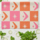 Paño De Cocina Checkered Mid Century Boomerangs pink and orange