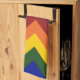 Celebra tu orgullo LGBT o amor al color con un arco iris geométrico. Una serie de chevrones rojos, naranjas, amarillos, verdes, azules, índigo y violetas convergen en este audaz patrón geométrico original. Imagen creada digitalmente. Copyright © 2012 Claire E. Skinner. Todos Los Derechos Reservados.