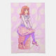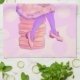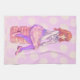 ¡Un lindo chica con un vestido rosa y morado sentado en un montón de macarones!