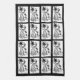 Bailarines hula hawaianos bailan en una playa tropical con palmeras y una cabaña tiki al fondo. Diversión para un bar de tiki, un luau, un fiesta o simplemente para una temática de playa, isla o verano. Se muestra en un fondo negro coincidente o cambia a blanco, azul o cualquier color. Diseño de verano para cualquier tipo de evento al aire libre, fiesta o cocina. Algunas imágenes muestran líneas que parecen onduladas o desiguales, es la forma en que se fotografió - ver todas las imágenes.