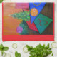 This kitchen towel's design is based on an acrylic painting called Christmas Joy by Kathy A. Wittman. It features an assortment of holiday objects, arranged in a festive still life. It portrays the beauty of the Christmas season.