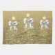 Paño De Cocina Christmas Sparkling Trees Gold Faux Silver Bow
