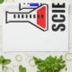 Un producto que muestra el entusiasmo para la ciencia. El diseño muestra un cubilete con una sustancia química azul, un frasco con un líquido rojo. Un microscopio se sienta a la derecha.