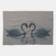 Impresionante fotografía de dos cisnes nadando cabeza a cabeza creando la ilusión de un corazón en el agua. Están juntos en un lago polvoriento temprano por la mañana,