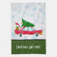 Paño De Cocina Coche rojo retro que lleva un árbol de Navidad
