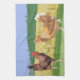 Este colorido paño de té te traerá el campo a la cocina, el diseño consiste en un gallo y luego en un prado.