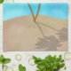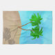 Toalla de mano con motivos en una escena de playa de palmeras tropicales, arena y cielo hechos de un collage digital de acuarelas e imágenes con motivos