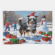 Un elegante Rough Collie corre alegremente a través de la nevada escena del invierno, usando un gorra festivo de Navidades rojos. Este encantador diseño resalta el abrigo fluido de la raza, los ojos inteligentes y la personalidad amable, al tiempo que captura el calor y la alegría de la temporada de vacaciones. Un alentador momento de invierno lleno de alegría festiva.