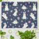 Este bonito diseño presenta conejitos blancos de Pascua con flores rosas en un fondo azul marino. Pascua.