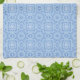 Combinación armoniosa de patrones geométricos lineales que se asemejan a un horizonte urbano tranquilo, adornado con delicadas estrellas y suaves soleadas en tonos azul pálido
