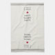 Una linda toalla personalizada de cocina con letras de máquina de escribir antiguas, detalles de rayas de cuerda y un ilustracion cardíaco. "Hogar, dulce hogar" o el texto personalizado elegido aparece junto con las coordenadas de latitud y longitud de su casa.