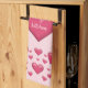 Paño De Cocina Corazones rosados con texto personalizable